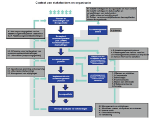 We kennen allemaal het bekende ISO 55002 plaatje van het assetmanagementsysteem, dat de belangrijkste onderdelen beschrijft en eigenlijk een kapstok is om de ISO 55001 eisen die aan de onderdelen van het managementsysteem worden gesteld te groeperen.